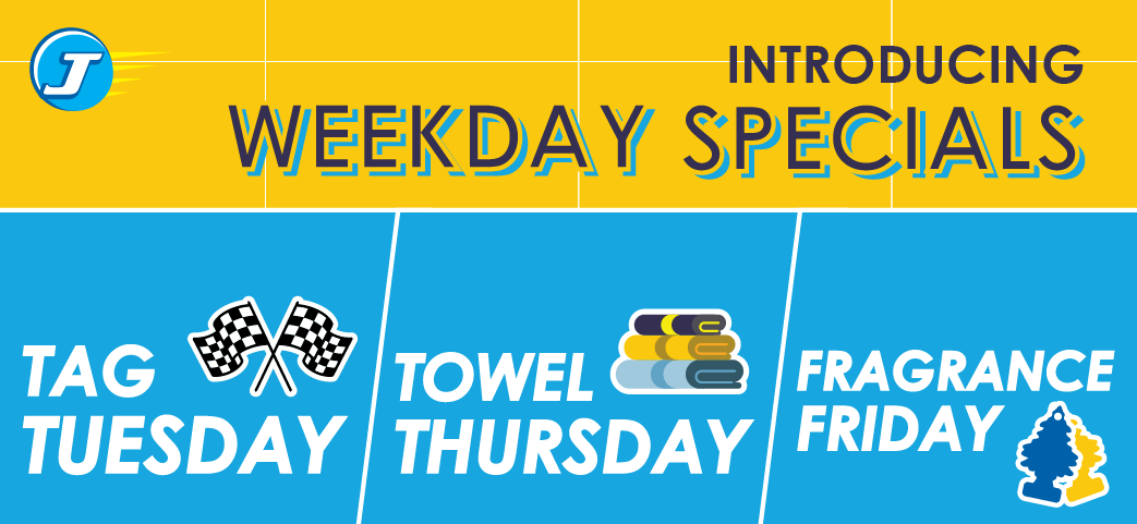 These weekday specials are all about adding a little extra to your routine. From faster entry with a Fast Pass tag, to keeping your interior clean with fresh towels, to finishing with a scent you enjoy — it’s about making every visit to JetSplash more convenient and more enjoyable.