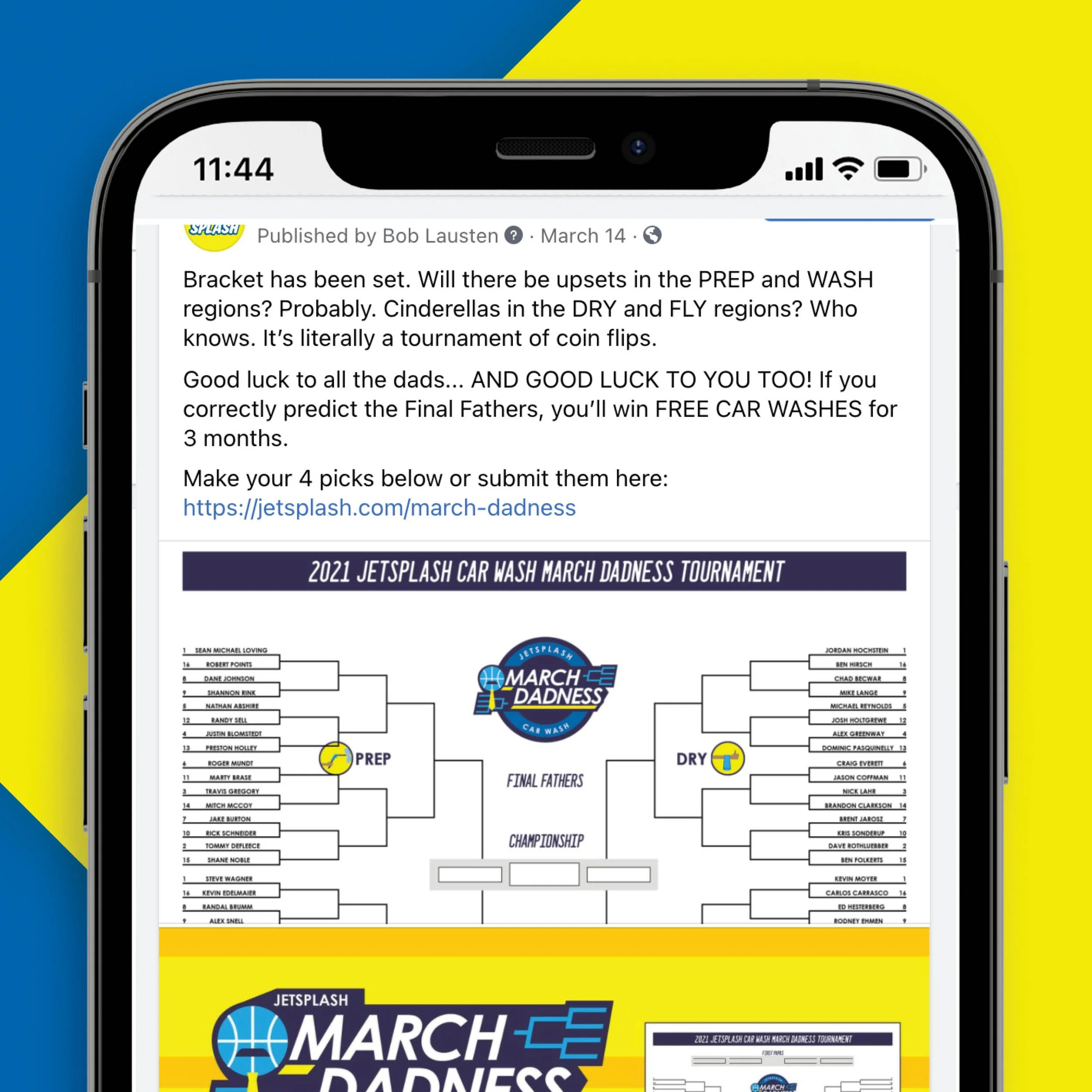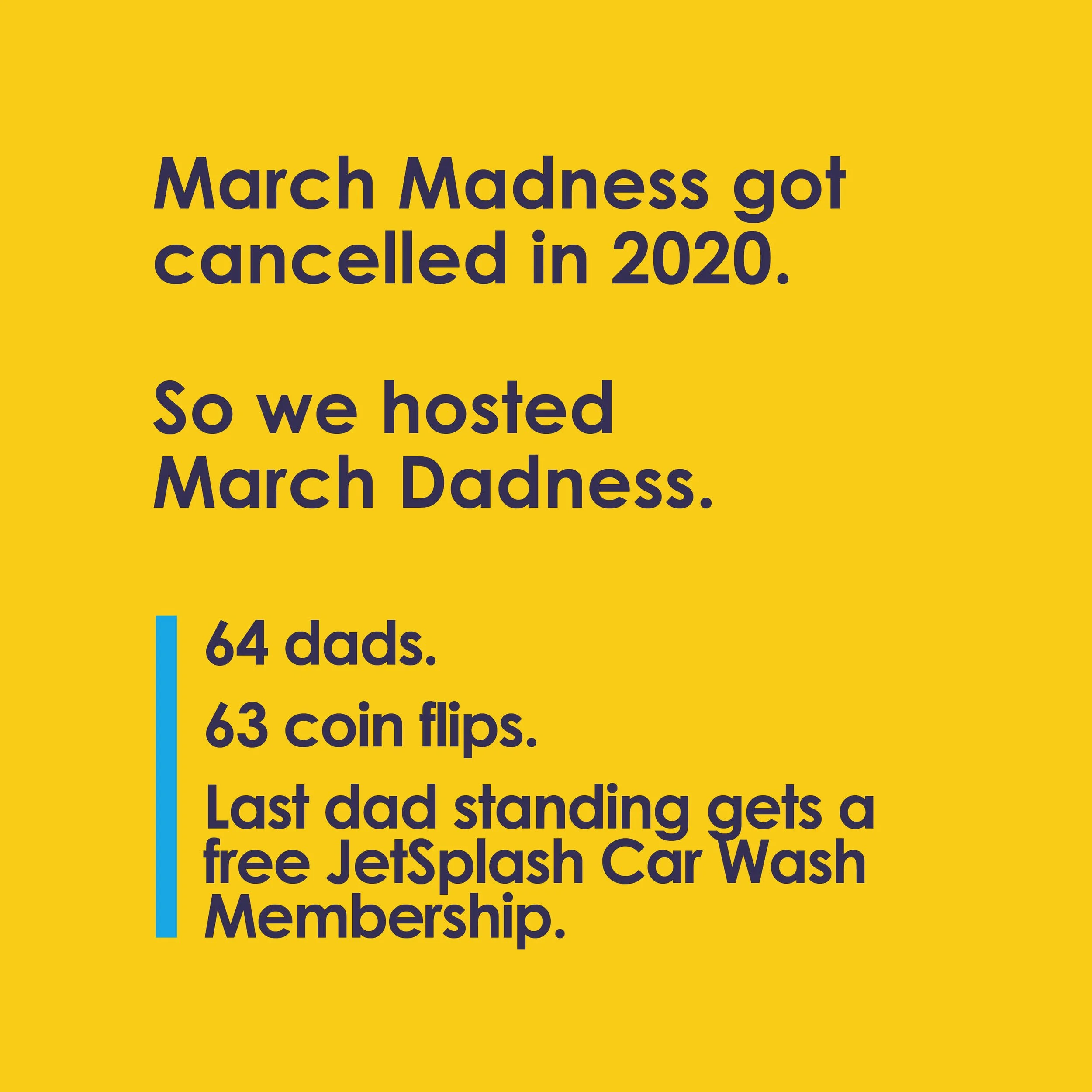 It’s March. That means dads everywhere are meeting at bars over their lunch breaks. They’re setting up another TV in the living room. They’re watching basketball… AND they’re checking their phones to see how they’re doing in the JetSplash March Dadness Coin Flip Tournament.